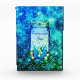 A mason jar of glowing fireflies or lightning bugs against a starry night background. An elegnt country rustic design. In colours of blue, green and yellow.