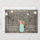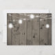 Trendy, rustic wood and mason jar lights couples shower invitations for rustic country wedding styles- Vintage barn wood planks background in faded, taupe antiqued look. Across the top are hanging, rustic country mason jars and romantic string lights. Personalised with couple's names in coordinating, palest grey with shadow effect. A country chic mint green mason jar with wildflowers bouquet separates the wedding details. Back has matching rustic wood background with country lights. Note: All images are printed. Use the Customise It button to change anything - font styles, sizes, colours, or placement. Perfect rustic country couples shower engagement party invites for vintage wedding themes, mason jar weddings, barn wedding styles, rustic weddings, country weddings, summer wedding, casual outdoor weddings, or country western weddings. We have coordinating, rustic wood wedding supplies and decor in our Zazzle.com/angela65 shop. Simple, country rustic engagement shower invites ready to be personalised with your own details.