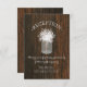 A rustic and elegant wedding reception card featuring an illustration of a mason jar of baby's breath over a barn wood inspired background.
