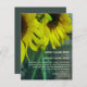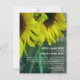 A fall or summer wedding invitation featuring a close up photo of a jar of sunflowers over a barnwood background. Pesronalize the text with details of your occasion. Opposite side is grey.