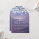 Under the Stars Sparkling Garland and Stars with Rustic Romantic Mason Jars and an Ultra Violet Purple Lavender Pastel Mountain Background Wedding Invitations