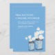 Perfect for a country style wedding or maybe you just love Mason Jars! Mason Jar with white Gerber daisies. Robin's Egg Blue colour with black drawing of a Mason Jar filled with artsy white daisies. If you have any questions on this design or want a colour change please email me paula@labellarue.com