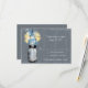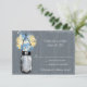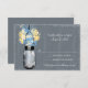 Matching RSVP card perfect for a country style wedding or maybe you just love Mason Jars! Mason Jar hanging on a hook filled with country wildflowers. A Distressed Steel Grey Background with the hanging Mason Jar and wildflowers in colours of Country Blues and Yellows. If you have any questions on this design or want a colour change please email me paula@labellarue.com Also check for the RSVP, RECEPTION and GUEST SEATING Cards to match!