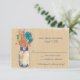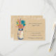 Matching RSVP card perfect for a country style wedding or maybe you just love Mason Jars! A Vintage distressed background with the hanging Mason Jar and wildflowers in colours of shades of rustics teals, rose and gold. For enquiries about custom design changes by the independant designer please email paula@labellarue.com BEFORE you customise or place an order.