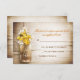 beautiful rustic wedding RSVP - wedding reply cards with distressed wood background and mason jar with yellow and white flowers . I suggest a Linen paper for this design.