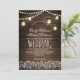 Rustic mason jars with string lights brown wood background lace wedding invitation for summer, fall, spring or winter wedding! Perfect design for the country wedding with mason jars lighting and strings of lights decor. Contact me for any support in design customisation. Matching products available