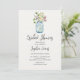 Introducing our Rustic Elegance Bridal Shower Invitation, a perfect blend of simplicity and charm. This invitation features a creamy off-white background, setting the stage for a beautiful and modern celebration. At the heart of the invitation is a delightful blue mason jar, gracefully filled with a vibrant bouquet of pink, yellow, and purple flowers, harmoniously intertwined with lush greenery. This rustic touch adds a sense of natural beauty and countryside allure to the invitation.