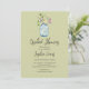 Introducing our Meadow Blooms Bridal Shower Invitation, a breath of fresh air and a celebration of nature's vibrant hues. This invitation boasts a soft and modern light green backdrop, reminiscent of a sun-dappled meadow in spring. At its heart, a charming blue mason jar takes centre stage, gracefully adorned with a delightful arrangement of pink, yellow, and purple flowers, artfully intertwined with lush greenery.