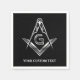 Searching for unique masonic party decorations? Here is personalised napkins template that you can customise with the name of your lodge or other desired text... The unique party napkin design features a modern silver square and compass logo of freemasonry over a black background. Feel free to change the background colour to match your own theme, and even change the square and compass symbol to gold, or a different style of silver (available if you further customise this design). Have an Annual Installation of Officers celebration on the horizon? These custom freemason napkins make for great masonic table decorations for this event, as well as lodge parties. Category: square and compass napkins; black and silver party ideas; and custom masonic party supplies. Colours: silver and black theme.