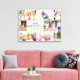 Create your own masonry style photo collage on a light grey canvas. The photo template is set up ready for you to display 9 of your favourite family photos. Your photos will automatically display in a masonry grid, with 2 landscape and 1 portrait picture on each of the 3 rows. The canvas has a light grey background colour - please browse our store for alternative colours.