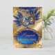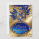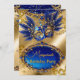 Masquerade birthday Party Gold Blue Mask Feathers Invitation