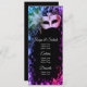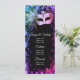 Masquerade party menu and program with beautiful multi colour masquerade mask on a pretty black and multi colour bokeh background. These masquerade party menu or programs are easily customised with the text of your choice on the front and back in the font style you prefer.