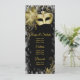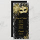 Masquerade party menu and program with beautiful gold masquerade mask on a pretty black, gold and white bokeh background. These masquerade party menu or programs are easily customised with the text of your choice on the front and back in the font style you prefer.