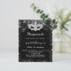 For an elegant Masquerade, 50th (or any age) birthday. A black background. Decorated with faux silver glitter and a masquerade mask. Personalise and add a name, age and party details. The name is written with a hand lettered style script