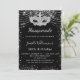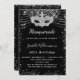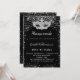 For an elegant Masquerade, 50th (or any age) birthday. A black background. Decorated with faux silver glitter and a masquerade mask. Personalise and add a name, age and party details. The name is written with a hand lettered style script