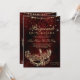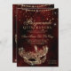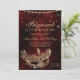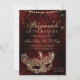 A modern, chic and glamourous QUINCEAÑERA with a hand drawn gold glitter masquerade mask with gold glitter diamond sparkles on a dark red burgundy watercolor background.