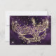 Masquerade rsvp mask gold glitter sparkles with dark purple watercolor, a hand drawn luxurious gold mardi gras mask with gold diamonds glitter confetti. Perfect for birthday party, masquerade ball or weddings.
