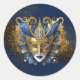 Masquerade Mask Motif Blue Gold ID1031 Classic Round Sticker