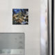 This stunning square magnet features two ornate masquerade masks adorned in rich blue, gold, and silver tones—capturing the beauty and intrigue of a classic Venetian carnival.