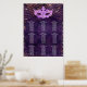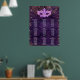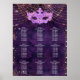 Seating chart for a Masquerade party A deep purple floral lace pattern as background. Decorated with faux glitter dust and masquerade masks. Personalise and add the guests names. 9 tables.