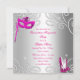 Masquerade Quinceanera Party Pink Silver Dress Invitation