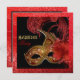 Masquerade quinceañera fifteenth birthday party red foil invitation, featuring a Venetian red, gold mask with red feathers on black background with a golden border of faux red foil with crumbled texture. Textbin gold. A perfect template design for your quinceañera masquerade ball or fiesta de quince años, fiesta de quinceañera, quince años or quince bal masque party. Note that there is not any real gold foil, mask or feathers but they are all “printed on” images.