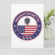 Badge of Massachusetts with flag of Massachusetts and flag of USA colours, rounded shape.