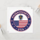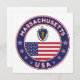Badge of Massachusetts with flag of Massachusetts and flag of USA colours, rounded shape.