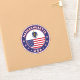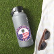 Massachusetts design with flag of Massachusetts and flag of United States, rounded shape.