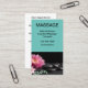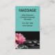 Massage theme appointment reminder business cards in a beautiful editable calling card template designed with a hot stone and floral graphic along with simple layout you can use to create your own custom design with an appointment reminder template on the flip side.
