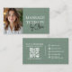 Give your massage therapy brand a calm, natural, and professional look with this linen sage green photo business card. The soft sage color paired with a subtle linen texture creates a warm, holistic aesthetic that suits massage therapists, wellness practitioners, bodyworkers, and spa professionals. Featuring a dedicated space for your photo, the design adds instant recognition and trust, while clean, modern typography keeps your name, specialties, and contact details crisp and easy to read. Fully editable and print-ready—ideal for appointments, new clients, spa settings, and everyday branding.