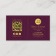 Massage Therapist QR Code Logo Burgundy & Gold Business Card