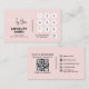 Keep your clients coming back with this Massage Therapist QR Code Pink Loyalty Card. Designed with a soft pink background, this card combines elegance with functionality. Featuring a scannable QR code, clients can easily track their visits, earn rewards, or access special offers. The modern, clean layout ensures your business stands out, while the customisable text allows you to add your logo, services, and loyalty program details. Perfect for massage therapists, spas, and wellness centres, this card is a convenient and stylish way to encourage repeat business.