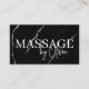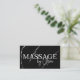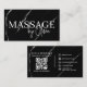 A sleek black marble business card with elegant silver veining, designed for a modern and professional look. The front features clean, bold text, while the back includes a scannable QR code for instant booking or client connections. Perfect for massage therapists, spa owners, and wellness professionals who want to make a lasting impression with a stylish and luxurious card.