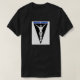 Black shirt with white male figure outstretched in a black triangle, MASSAGE THERAPIST in blue caps type