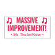 This inspirational rubber stamp design features the positive message "MASSIVE IMPROVEMENT!" and a personalised tutor name. It also features a decorative beamed quavers. It could be used by a teacher, educator, instructor, or tutor when grading student work, to acknowledge that a student has done an exceptional job.