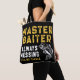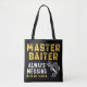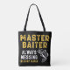For the fishing lover a design that says master baiter always messing with my tackle. This design looks really effective on this Tote Bag