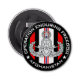Very cute and compact little bottle opener. Also very fond of the magnet, both for sticking to the fridge and holding on to the bottle cap when trying to open it. Good quality print. As pictured.