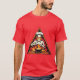 I give wanted to give this a 4 instead of a 5 because these Basic DARK T0shirts run unexpectedly SLIM or Narrow. Which is great if you do not have a potbelly, but I have a paunch. It isn't the shirt's fault that I've got a beer belly. The design and shirt itself is a quality cotton shirt. The color is more of a deep purple, but still a very pretty color. The Basic DARK T-shirts run a bit SLIMMER than the Basic Ts. The neck is a fraction narrower (or seems to be narrower) also. I'm a paunchy middle-aged woman and my neck is 12 inches (31cm) thick and the neckline fell about the same as in the photo of the man, and I had the desire to tug it a bit. So if you're a thick necked man or like loose shirts, be aware these are slimmer shirts. Once I get rid of my lockdown paunch it'll look great. The shirt washed well in cold water with no apparent bleeding. We don't have a dryer, so it hung dry. Did not shrink. Love the colors and the design. The design looks smaller on my shirt than it does on the model on-line. But still, it looks good on the shirt. The printing looks as it does on the model, just the size seems fractionally smaller. Washed garment in cold water, hung dry and design appeared unaffected.