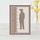 Masters Degree card for a male graduate. This card has an image of a male in a dress suit silhouette with a graduation cap. The left part of the design looks like a spiral notebook with the words "Masters Degree" on a digital art piece. You can remove "Son" from the inside of the card and use it for any other graduate.