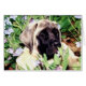 A stunning fawn Mastiff puppy laying in the bluebells.