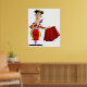 Brighten up any room with this bold poster featuring a unique cartoon matador graphic. The high-quality print showcases the Spanish bullfighter in his traditional, detailed red and gold suit holding a sweeping red cape. Perfect for adding a touch of humor and Iberian culture to a bedroom, office, man cave, or living area. This festive art poster makes a great statement piece and souvenir for collectors of unique Spanish-themed wall decor.