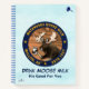 From world famous and entirely mythical Matanuska Moose Milk dairy farm in Willow Alaska; not too far from Anchorage. A bull moose (Alces alces) holds a glass of fresh moose milk. The moose is surrounded by a circular banner with the blue and yellow of Alaska's state flag. Text reading, "MATANUSKA MOOSE MILK", "WILLOW, AK", and "ESTD 1957", appear on the banner. Two customisable lines of text reading, "DRINK MOOSE MILK" and "It's Good For You." appear below the banner. You may change both the font and colour of this text.