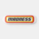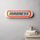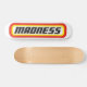 White skateboard with a red and yellow Madness logo, similar to Matchbox logo. Because playing can be more than just fun...