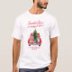Celebrate the holidays in this fun t-shirt featuring the words "Santa Claus is coming to town" and a festive vintage red truck filled with a christmas tree, gifts, santa hat and little bird. Easily personalise with names for a matching family holiday outfit. So fun!