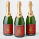 Matching Set Christmas Red Gold Tree Stars Name Sparkling Wine Label