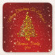 Square Paper Coaster - Merry Christmas - Change the Message and the NAME / Year on this Red with Gold Tree and Stars Design - - - - See my store for more items with this design including Plates, Napkins, Coasters, Balloons, Bunting, Desserts, Favour Boxes and lots more table settings and goodies.