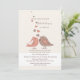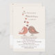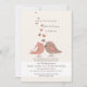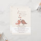 A whimsical pair of lovebirds, dressed as a bride and groom, are beaming with love for one another. A wonderful informal Post Wedding Brunch Invitation.