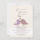 A whimsical pair of lovebirds, dressed as a bride and groom, are beaming with love for one another. A wonderful informal Post Wedding Brunch Invitation.
