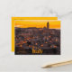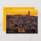 This postcard features Matera Italy at sunset. Located in the province of Matera, it is in the region of Basilicata, in Southern Italy. It is the capital of the province of Matera and was the capital of Basilicata from 1663 to 1806. The town lies in a small canyon carved out by the Gravina which is a river in southern Italy.